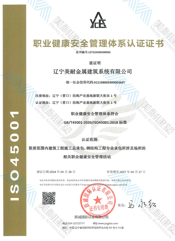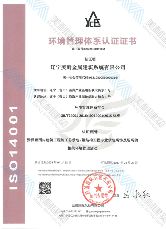 遼寧美耐金屬建筑系統(tǒng)有限公司位于遼寧(營口)沿海產業(yè)基地,專注于預制金屬建筑系統(tǒng)領域,是一家集工業(yè)建筑設計、制作、施工及相關的技術咨詢與服務為一體的綜合性服務企業(yè)。作為國家鋼結構協會會員、中國建筑金屬結構協會會員單位與國家高新技術企業(yè),美耐建筑集建筑工程施工總承包、鋼結構工程專業(yè)承包等多種資質于一身,并擁有22項鋼結構建筑領域專利,9項軟件著作權。